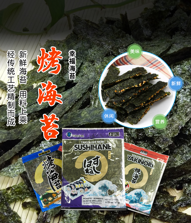 上海高岡屋食品有限公司是日本株式會(huì)社高岡屋在中國(guó)投資的獨(dú)資公司,日本國(guó)株式會(huì)社高岡屋于一八九零年創(chuàng)立,在日本有著百年以上的歷史。公司會(huì)長(zhǎng)高岡正則先生早在60年代就來(lái)到中國(guó),積極推廣海苔的養(yǎng)殖和加工技術(shù),開拓發(fā)展了中國(guó)條斑海苔養(yǎng)殖加工事業(yè),其產(chǎn)品在日本國(guó)內(nèi)獲得“農(nóng)林大臣獎(jiǎng)”,在美國(guó)和歐亞地區(qū)也深受消費(fèi)者歡迎。